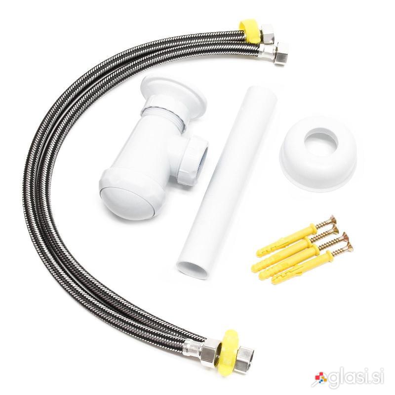 Poleg tega je mogoče umivalnik z okroglim notranjim umivalnikom namestiti na steno, da prihranite prostor. Za zagotovitev enostavne montaže je ustrezen pritrdilni material vključen v obseg dobave. V obsegu dobave so tudi ostali pripomočki za montažo umivalnika. To med drugim vključuje dve gibljivi cevi in vnaprej sestavljen mehanski mešalni ventil. Slednji omogoča enkratno regulacijo temperature vode, tako da je prilagojena vašim potrebam.