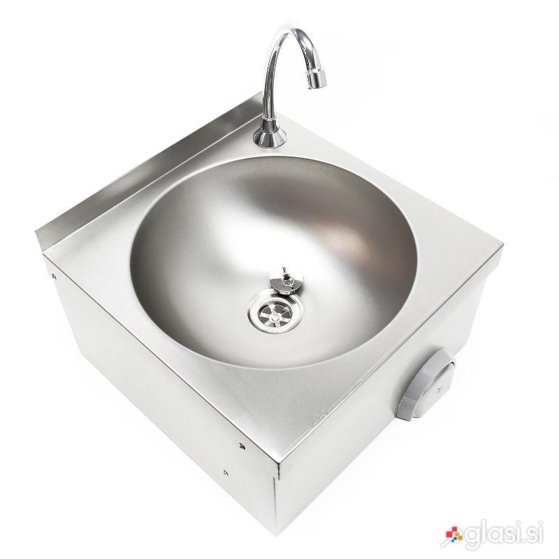 Stenski inox umivalnik z vklopom na koleno + armatura