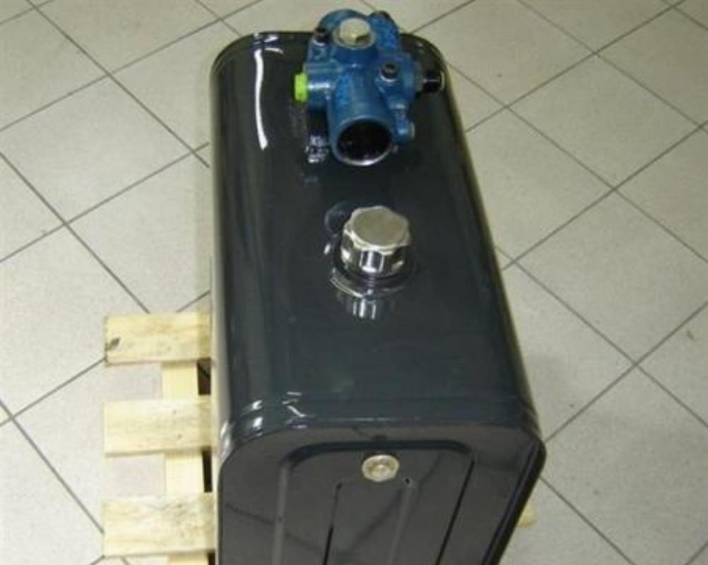Rezervoar za hidravlično olje, komplet z distribucijskim ventilom, zračno voden, pretoka 200-250 l olja/min. Dimenzije d: 600 mm, v: 570 mm + ventil 700 mm, š: 320 mm. Brez ddv