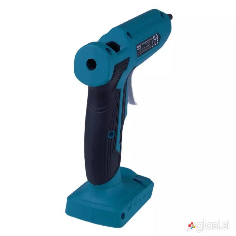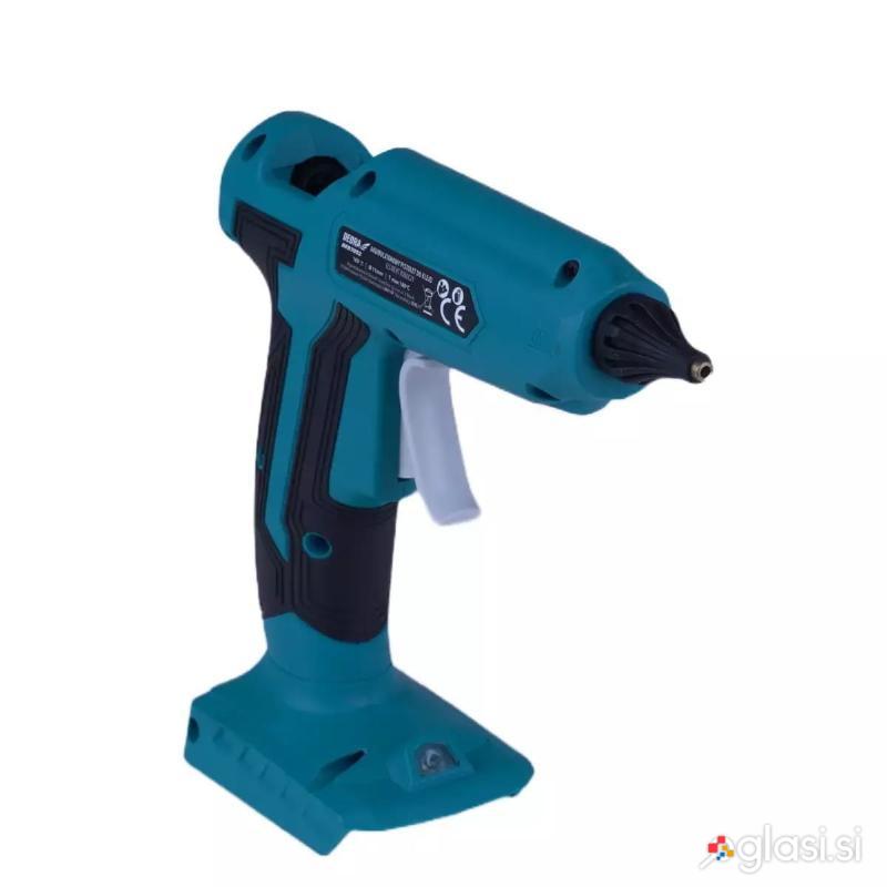 S pištolo za vroče lepilo lahko spajate materiale, kot so les, plastika, kovina, usnje ali guma. Sestavni deli so povezani z lepilnimi vložki s premerom 11 mm. Za pištolo je značilna lahka in trpežna zasnova, zato je zelo priročna in udobna za delo. Pištola se uporablja tako pri profesion alcih kot tudi pri ljubiteljih domače obrti in dekoraterjih. Pištola se napaja z akumulatorsko baterijo, kar omogoča delo na mestih, kjer ni mogoče uporabljati električnega omrežja, npr. v primeru izpada elektrike ali na parkirišču ali vrtu. Ergonomsko oblikovan, zaobljen ročaj zagotavlja odlično udobje med uporabo. Hitro segrevanje v 3 minutah omogoča doseganje najvišje temperature 180 stopinj Celzija, kar zagotavlja, da se lepilo stopi v kratkem času. Stikalo za vklop/izklop pod palcem preprečuje varen vklop stroja. Priročna prazna stran omogoča dovajanje lepila skozišobo s hitrostjo 15 g/min. Osvetlitev LED omogočaudobnejše delo v slabo osvetljenih prostorih.