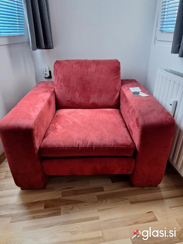 Fotelj, izjemno udoben, Natuzzi, model Florence, v mikrotkanini Dreamfibre, barva rdeča. Dimenzije fotelja so 100x104x74cm. Zelo malo seden, ker smo sedeli na sofi in je odlično ohranjen, ni poseden ipd. Nekadilsko stanovanje, brez hišnih ljubljenčkov. Slike so dejanske slike fotelja, ki je na voljo. Možna je dostava.