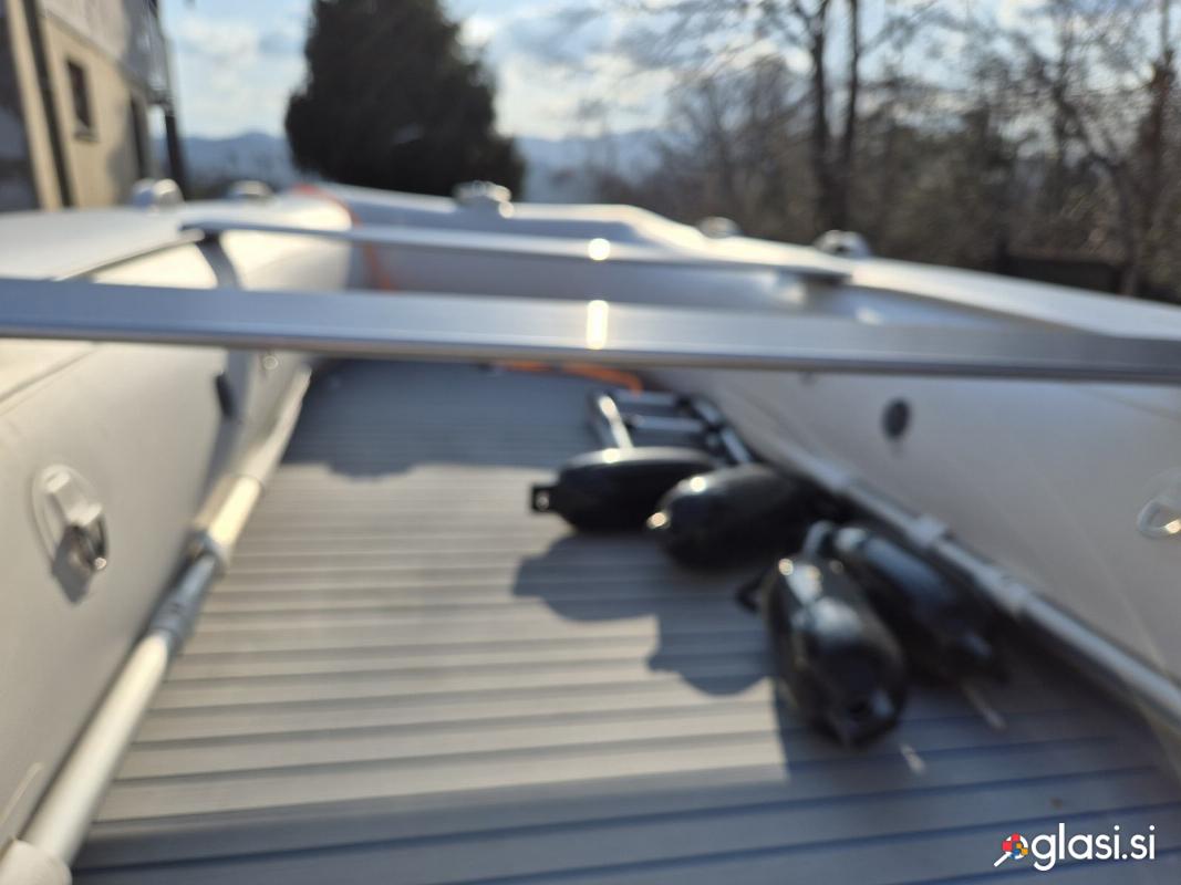 Gumenjak ZAR ALU 13 z motorjem Yamaha F20 oboje kupljeno 30.7.2024 pri Motonavtiki v Mariboru. Motor ima vsegaskupaj cca. 20 delovnih ur in ima opravljen servis. Na čoln je bil dodatno montiran ROLBAR na katerem je siderna luč, navigacijski luči, 2 reflektorja in dva droga za zastavi. V čoln je vgrajena tudi kalužna črpalka in obložena aluminijasto dno z EVA peno. Čoln ima na spodnji strani glavnih tub original nameščene še spid tube, ki omogočajo čolnu da hitro izglisira po vodi. Čoln se prevaža na prikolici za plovila katera je bila nova kupljena 16.9.2024 in je že zajeta v ceno. Dimenzije gumenjaka so dolžina 3,90m in širina 1.95m. Plovno dovoljenje velja do 30.10.2029.