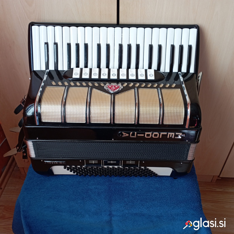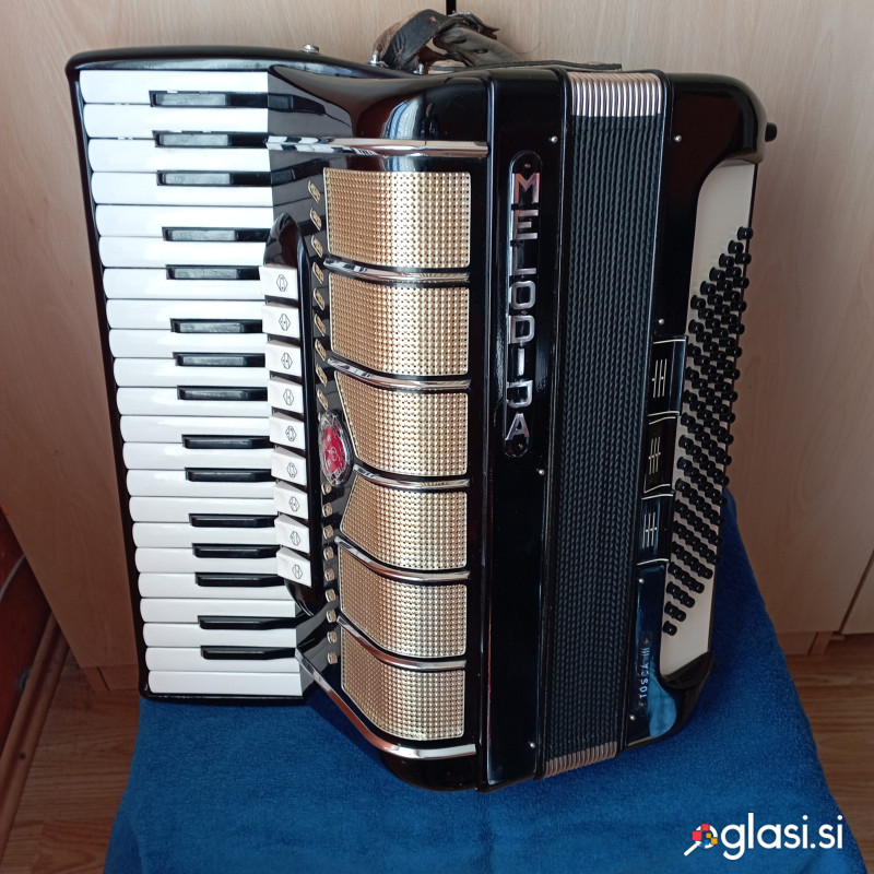 Harmoniko Melodija Tosca III 96 basna 9+3 registra z kovčkom. Harmonika je brezhibna odlično ohranjena. Inf. na mobitel.