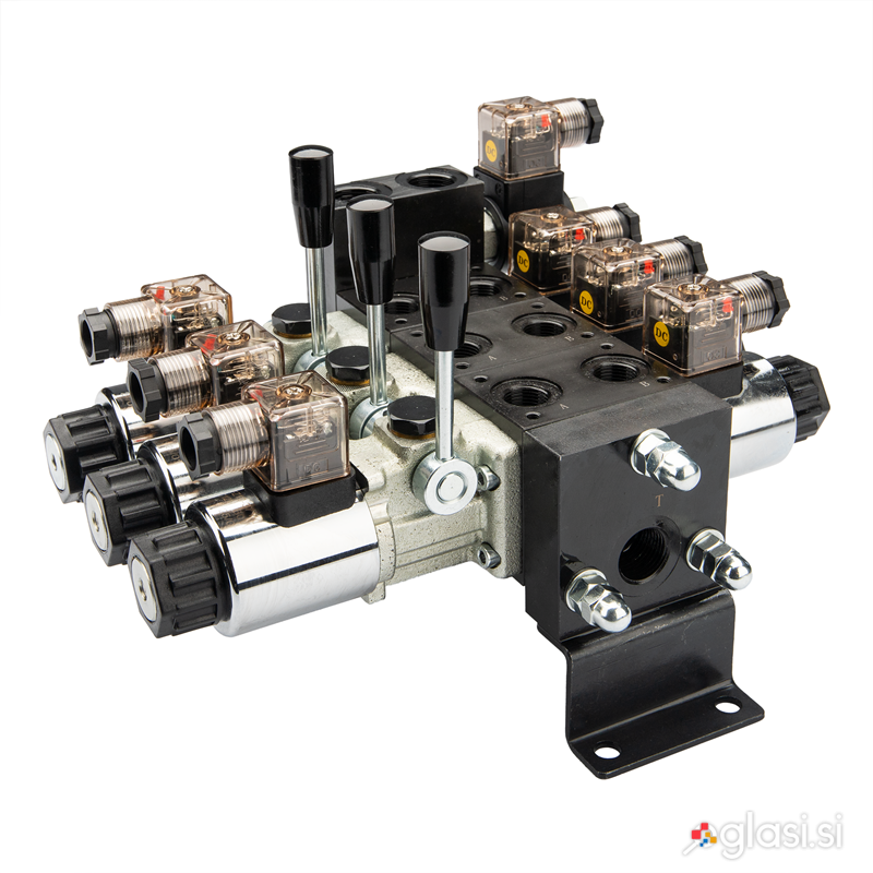 Krmilni hidravlični bloki z elektromagnetnimi ventili. Glede na zahteve je blok lahko opremljen tudi z blokirnimi oz. dušilnimi ventili ali pa regulatorji tlaka (sendvič izvedba) Za dodatne informacije in cene nas kontaktirajte. kontakt: 04/ 515 4420 059/ 077 034 email:info@spg.si