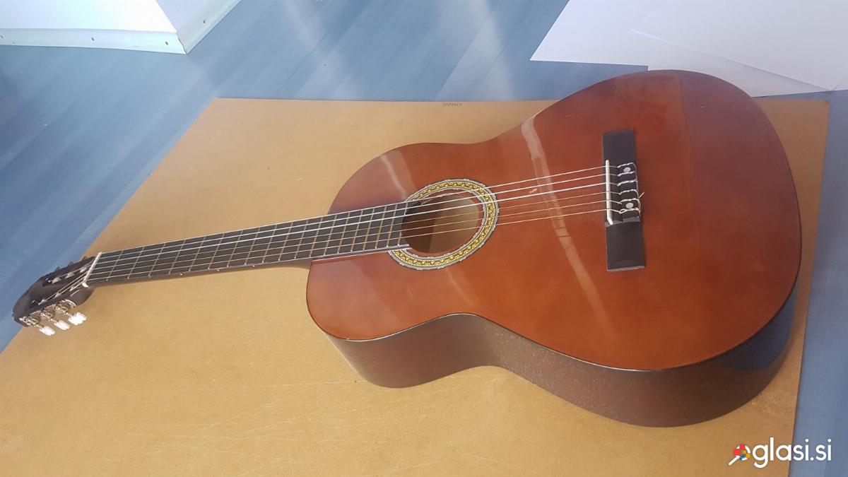 Kitara, Bila je pred leti kupljena v Lidlu v neki akciji in je brezhibno ohranjena. Zraven priložim še torbo, mehko in trdo trzalico, zvezek in cd za učenje, ter napravo za oglaševanje.