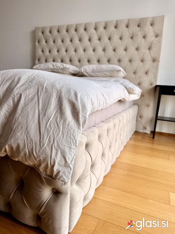 Posteljo po meri narejeno, izjemno kvalitetno, moderno, dizajnersko, velikosti 160x200cm v bež titan barvi. Priloženo je tudi ledveno dno. *posteljnina,odeja in vzglavniki niso naprodaj. Ogled in prevzem možen v Lj. V kolikor potrebujete še sedežno garnituro, prodamo tudi ujemajočo dizajnersko po meri narejeno sedežno - poglejte ostale moje oglase.
