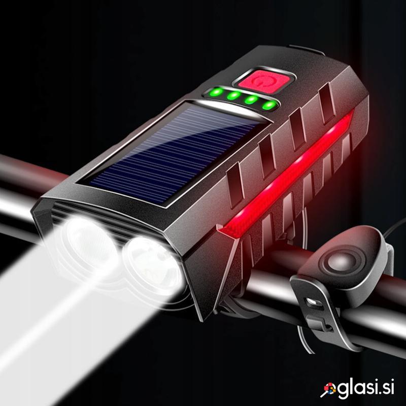 Set solarne aku. LED kolesarske svetilke in sirena 1200lm USB + zadnja luč