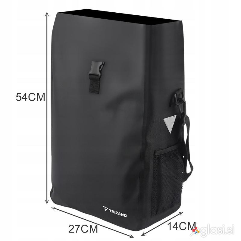 SPECIFIKACIJA - material: PVC + oxford 500D; prostornina: 15l; pritrditev: na prtljažnik; odsevniki: da; komora:1; žep: 1; mere: 53 x 27 x 15,5 cm; teža: 542 g