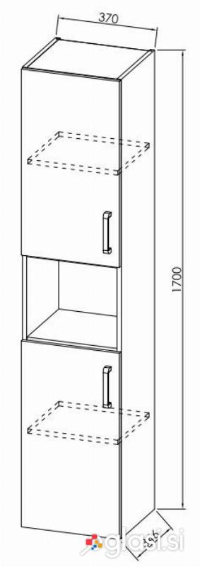 Omarica Kolpasan Evelin, viseča . Nova, samo sestavljena. Prevelika za našo kopalnico. Prodaja se samo viseča omarica na levi strani. Mere so na drugi sliki. Možna menjava za manjšo Kolpasan Evelin omarico (viseča, 70 cm).