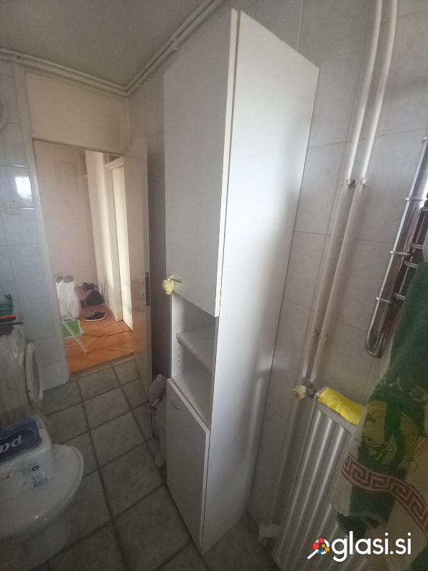 Omaro visečo (š x g x v) 50 x 25 x 81 -30 EUR, omaro /ogledalo z svetilkami (š x g x v) 98x20x70 (z svetilkami višina 85) - 40 EUR in stoječa omara (š x g x v) 32 x33 x 136 - 30 EUR.