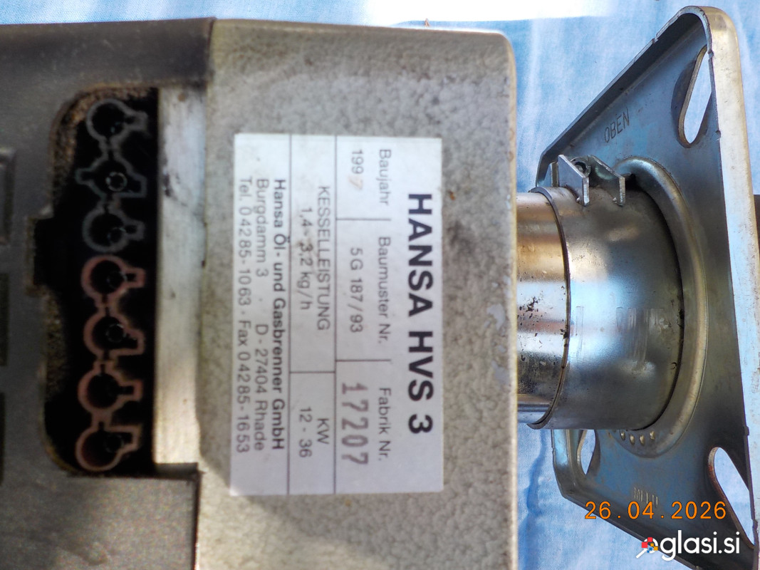 Oljni gorilnik HANSA HVS-3, 12-36 kW, redno servisiran, nova šoba in nastavitev, rumeni plamen, deluje brezhibno, prodam ugodno.