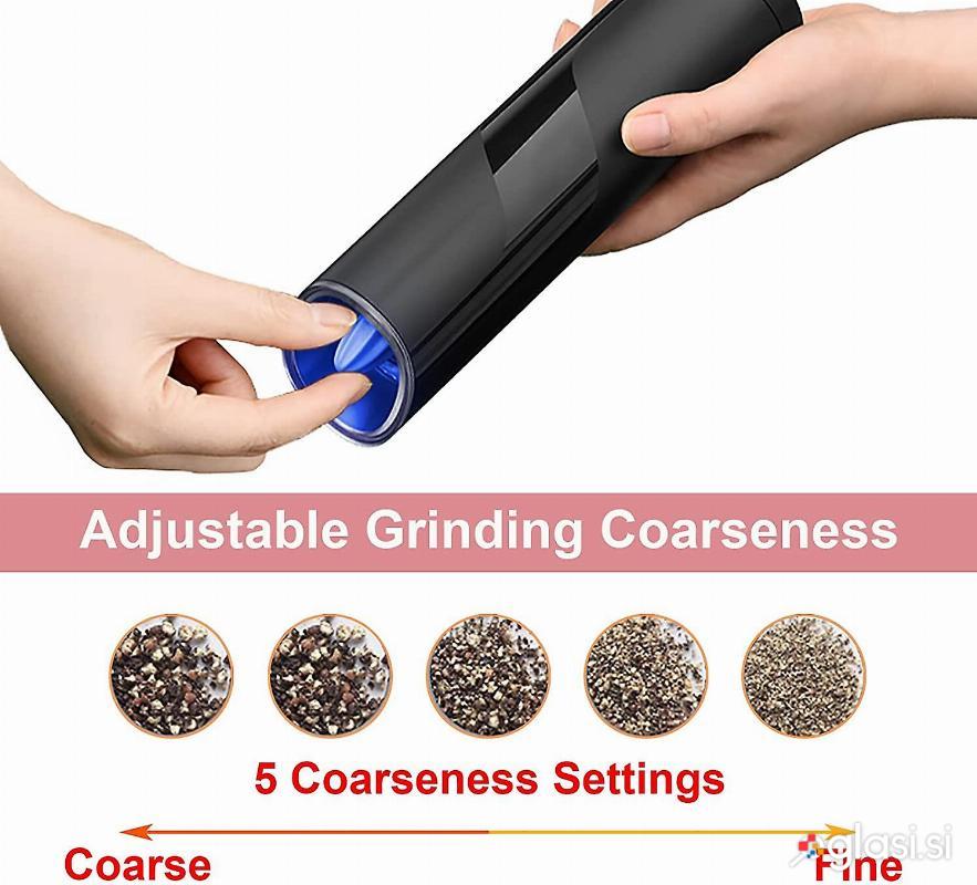 Zahvaljujoč gravitacijskemu senzorju obrnite mlinček pod kotom 45° in takoj bo začel z mletjem. Ni potrebno stikalo! Z vrtenjem brusilne glave prilagajate velikost mletih zrn. V nasprotni smeri urinega kazalca poveča velikost zrn, v nasprotni smeri urinega kazalca pa jih zmanjša. Keramično brusilno jedro je izdelano iz prvovrstnega materiala. Material je trd, vodoodporen in zagotavlja temeljito brušenje.