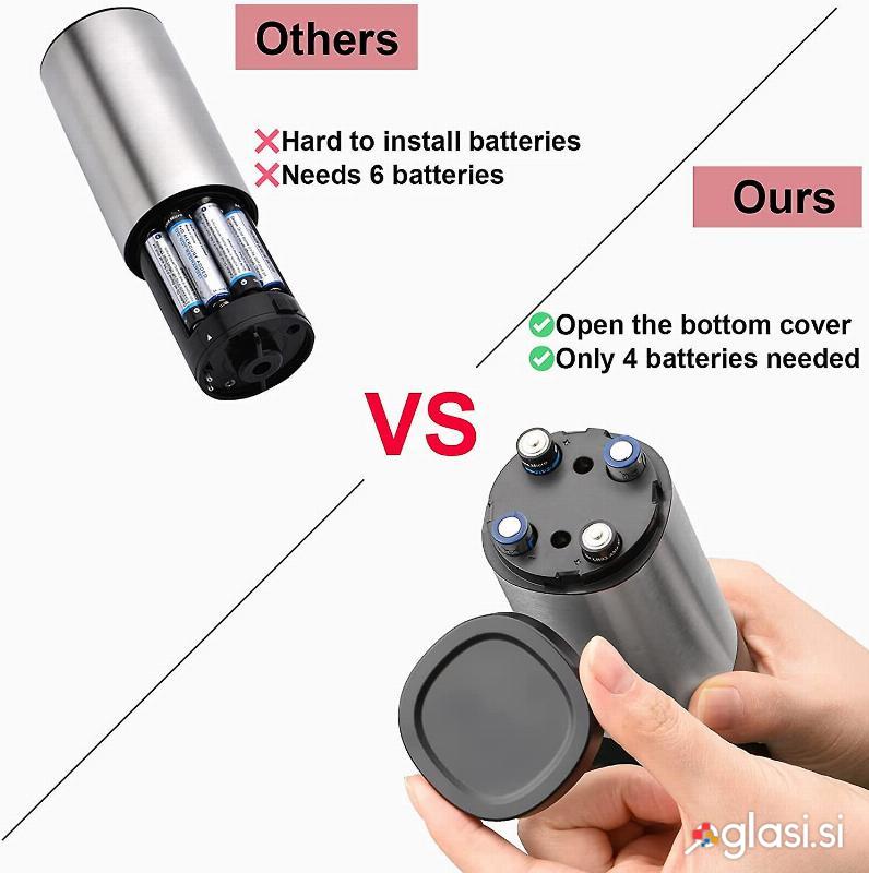 Mlinčka vam ni treba priključiti v vtičnico, po potrebi ga lahko premikate. Vanj le vstavite 4 AAA baterije (niso del paketa). Površina mlinčka je izdelana iz ABS materiala, ki je prijeten na dotik. Brusilnik je lahek in tako olajša delo. Posoda za začimbe v mlinčku je dovolj velika, prozorna oblika omogoča nedvomno prepoznavanje začimb. Brusilna glava je odstranljiva, zato jo lahko kadarkoli temeljito očistite.