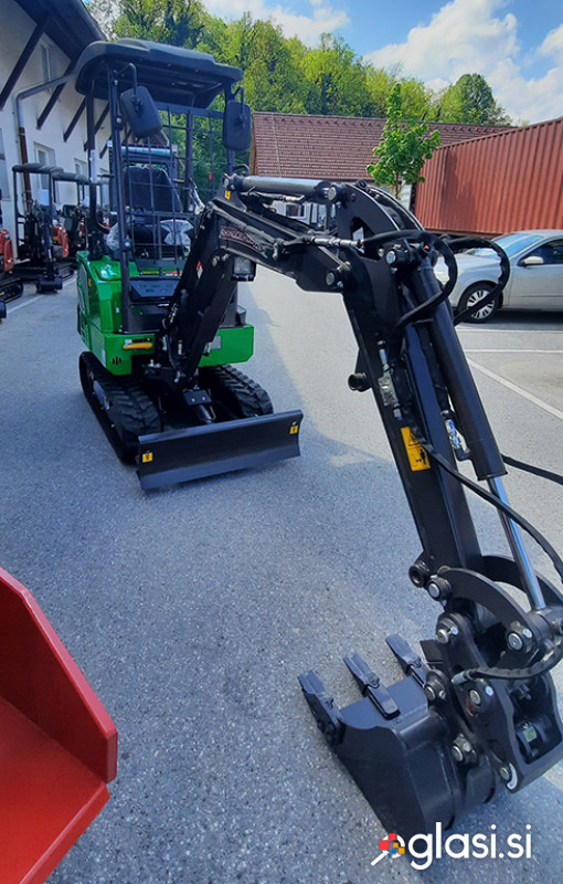 GARANCIJA 24 mesecev. Za brezskrbno uporabo vam zagotavljamo celovito podporo: strokovni servis, možnost servisa na terenu ter stalno dobavljivost rezervnih delov. Z vami smo tudi po nakupu. TEHNIČNI PODATKI: Delovna teža: 2000 kg Delovna naprava: rovokopač Standardna zmogljivost žlice: Drugačna žlica za možnost 0,029 cbm ELEKTRIČNI MOTOR: Model št.: TZXQD112-6-2 Nazivna moč: 5kw/ 6,7hp Nazivna hitrost: 1500rpm Nazivni navor: 31,8 N.m HITROST IN SILA KOPANJA: Maks. potovalna hitrost: 3km/h Hitrost nihanja: 11rpm Maks. naklon: 30° Sila kopanja žlice: 10,5KN Sila kopanja roke: 6,5KN Maks. vlečna sila: 13,5KN GOSENICE: Tlak na tla: 40Kpa Material gosenic: guma KAPACITETA HIDRAVLIKE IN TEKOČINE: Tip črpalke: Batna črpalka Tlak: 25Mpa Pretok: 27L/min Prostornina rezervoarja za hidravlično olje: 15L Baterija Kapaciteta baterije: 33,12kwh Delovni čas: 7-8h Standardni stroj: čas polnjenja (vgrajen polnilnik)220V: 8h Vrsta baterije: Litij-ionski napajalni sistem GLAVNA DIMENZIJA: a Skupna dolžina: 1220 b Skupna višina: 1540 c Protiutež obračalni polmer: 453 d Polmer vrtenja repa: 896 e Širina šasije: 1025 (1275 mm) f Širina koloteka: 180 g Višina koloteka: 320 h Transportna dolžina: 3509 i Višina sedeža do tal: 1620 j Skupna višina: 2440 k Nihanje roke levo: 390 mm I Boom nihajna desno: 510mm m Osnovna mera: 1273 mm GLAVNA DIMENZIJA: A Maks. radij kopanja na tleh: 3610 mm B Maks. radij kopanja: 3700 mm C Maks. globina kopanja: 2168mm D Maks. višina kopanja: 3265mm E Maks. višina odlaganja: 2280 mm F Maks. vertikalna globina kopanja: 1755 mm G Min. radij nihanja: 1580 mm H Maks. višina dviga rezila: 248 mm Jaz Max. globina dviga rezila: 199 mm