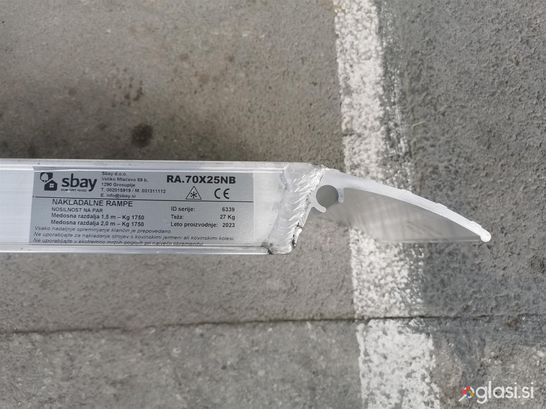 Nakladalne rampe NTS-Sbay 1,75T/2500 namenjene predvsem za Gradbene stroje, kot so bagri, dumperji,... Cena velja za par ramp. RAMPE SO NA ZALOGI. TEHNIČNI PODATKI: Nosilnost: 1750kg (nosilnost para) Dolžina: 2500mm Širina zunanja: 300mm Širina notranja: 250mm Teža: 27kg TEHNIČNE LASTNOSTI: Material: Aluminij Brez roba