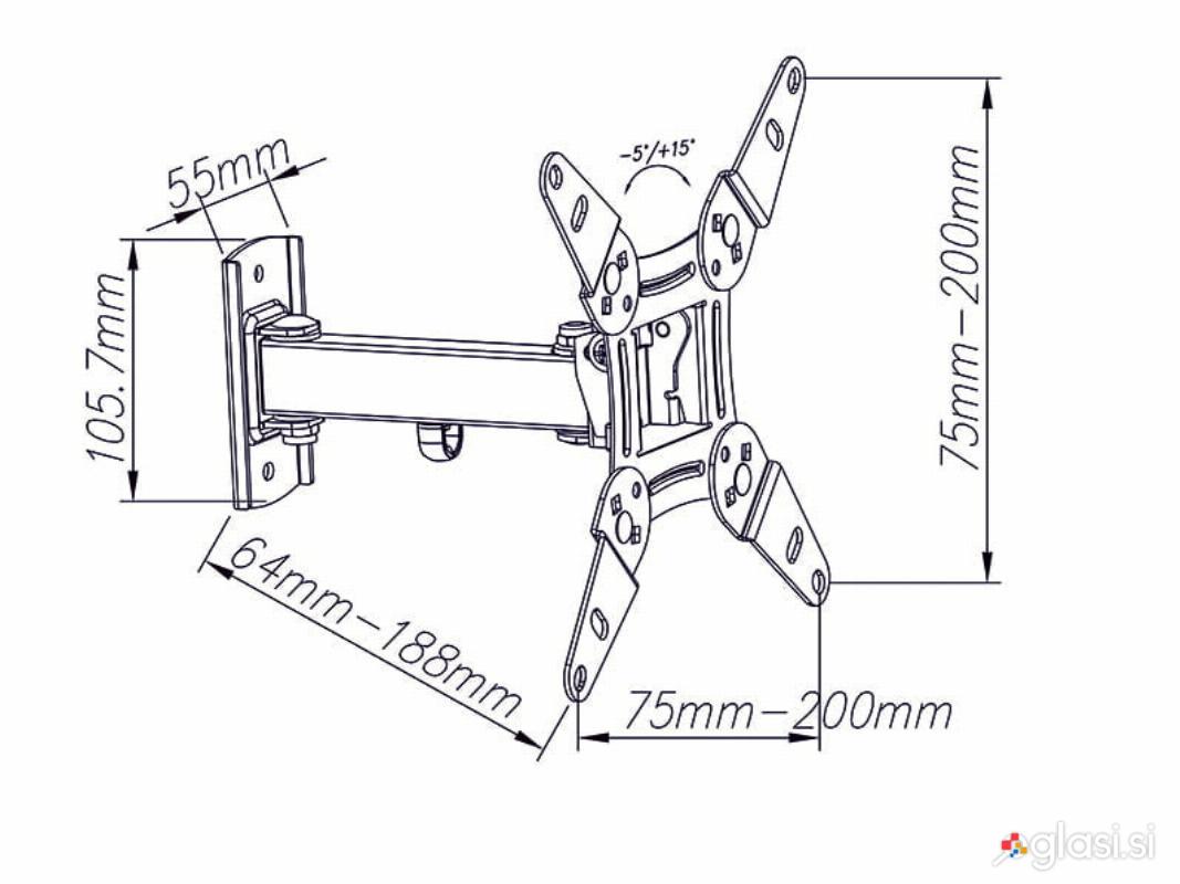 - Standardna VESA: do 200 mm x 200 mm (maks.)