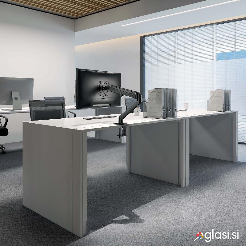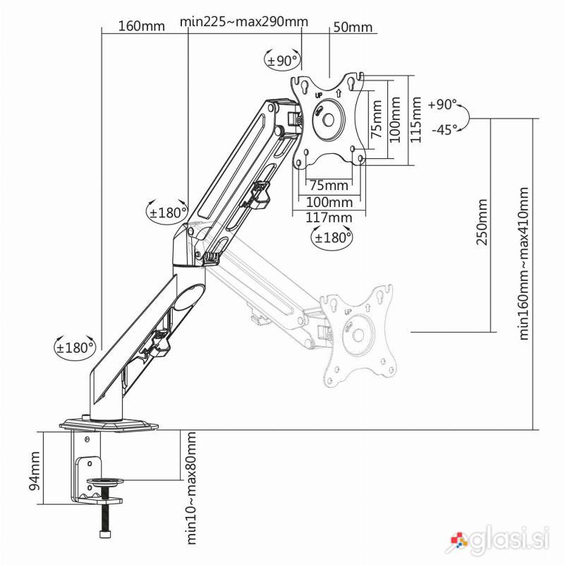Univerzalni nosilec za LCD monitor s plinsko tlačno vzmetjo je popolna rešitev za tiste, ki želijo izboljšati svoje delovno okolje in povečati udobje med uporabo računalnika. Ta nosilec je zasnovan za LCD monitorje velikosti od 17 do 27 palcev in tehta do 7 kg. Z njegovo pomočjo lahko enostavno prilagodite višino, nagib in kot monitorja, kar vam omogoča optimalno postavitev zaslona glede na vaše potrebe. Plinska tlačna vzmet zagotavlja gladko in enostavno prilagajanje brez truda. Nosilec je izdelan iz visokokakovostnih materialov, ki zagotavljajo trdnost in stabilnost, hkrati pa ohranjajo estetski videz vašega delovnega prostora. S tem nosilcem boste prihranili prostor na mizi in hkrati izboljšali ergonomijo vašega delovnega okolja. Ne glede na to, ali ste doma ali v pisarni, bo ta nosilec zagotovil, da bo vaš monitor vedno v pravilnem položaju, kar bo povečalo vašo produktivnost in udobje med delom.