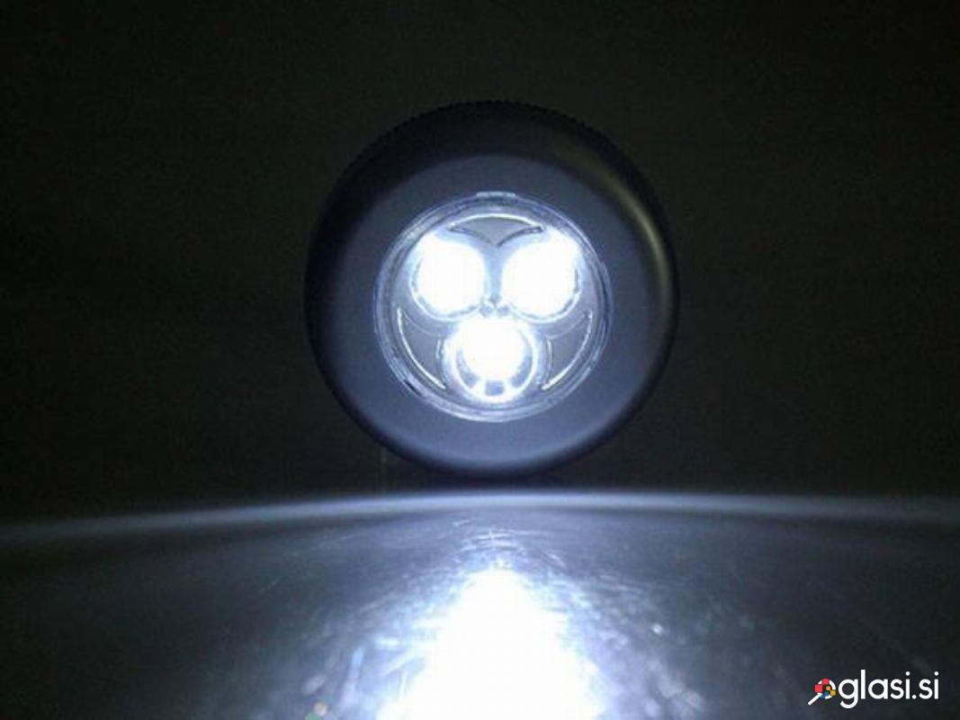 Samolepilna svetilka na dotik je popoln vir svetlobe v zatemnjenem prostoru. Zahvaljujoč 3 LED diodam ima močno in energetsko varčno svetlobo . Nobena napeljava ne omogoča namestitve na primer v garderobo, kuhinjo, spalnico.