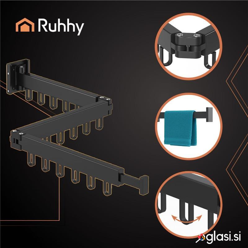 Praktični sušilnik perila in stojalo za oblačila RUHHY je idealna rešitev za majhne prostore – nameščen na steni ne zavzame prostora na tleh . Zahvaljujoč zložljivi in raztegljivi zasnovi lahko njegovo velikost prilagodite količini perila, po uporabi pa ga je enostavno zložiti. Njegova trdna konstrukcija zagotavlja stabilnost in vzdržljivost, tudi pri težki obremenitvi. To je priročen in estetsko prijeten način sušenja ali shranjevanja oblačil doma, v kopalnici ali na balkonu.