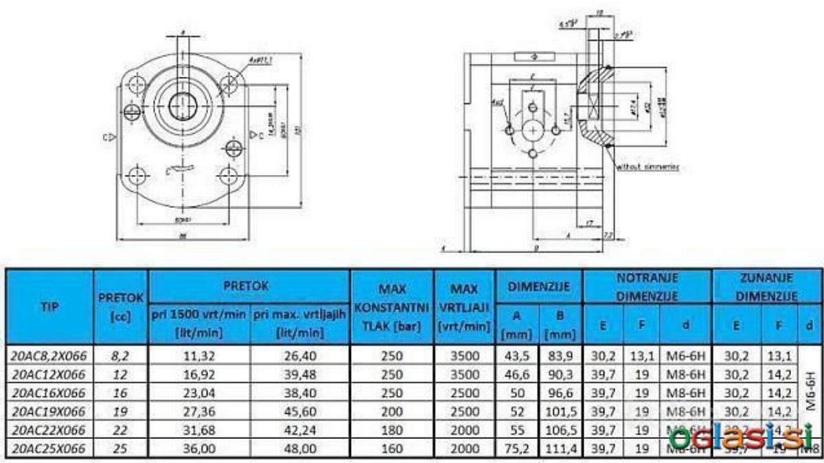 11292 - HIDRAVLIČNA ČRPALKA 20C19X067 FRONT GR.2 19 CC DESNA