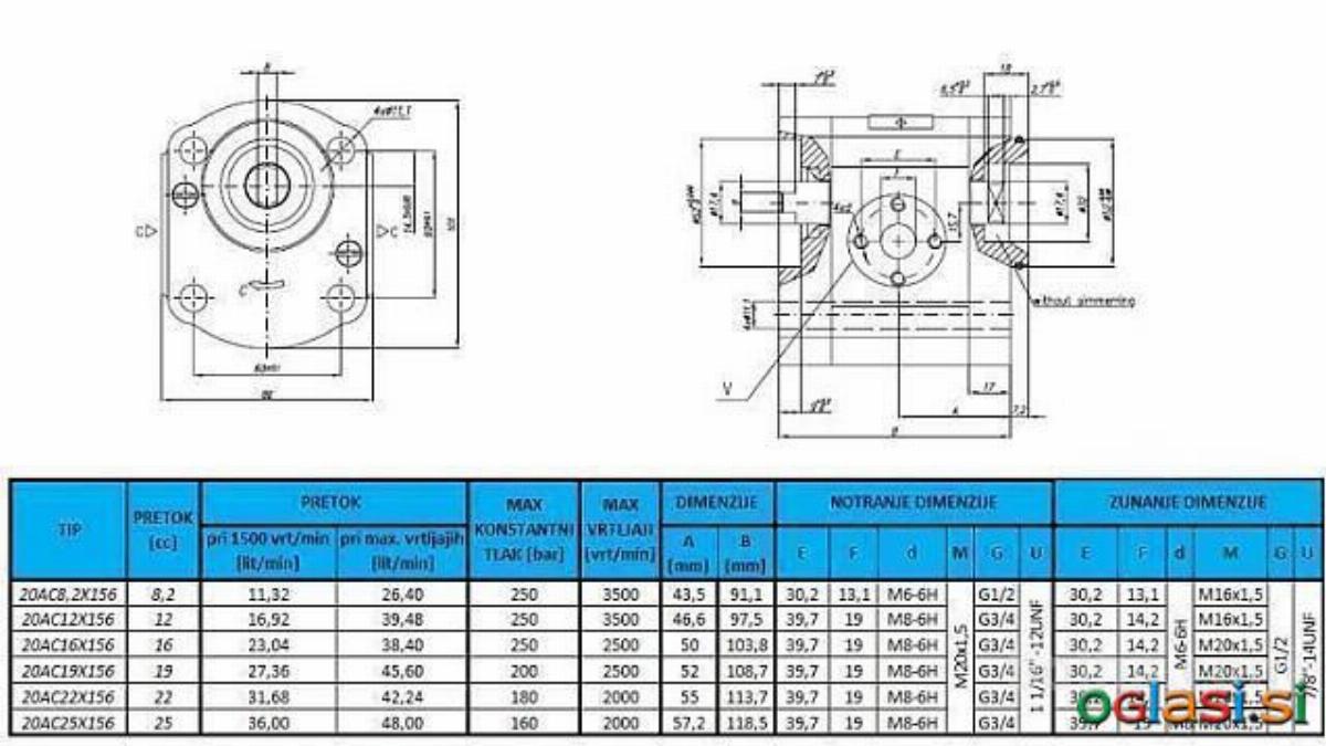 11831 - HIDRAVLIČNA ČRPALKA 20C22X156 MIDDLE GR.2 22 CC DESNA