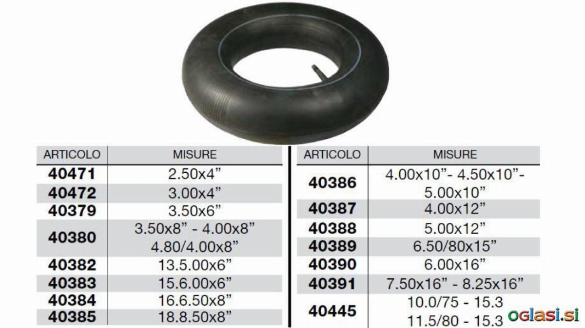 Zračnice za pnevmatike, različne dimenzije