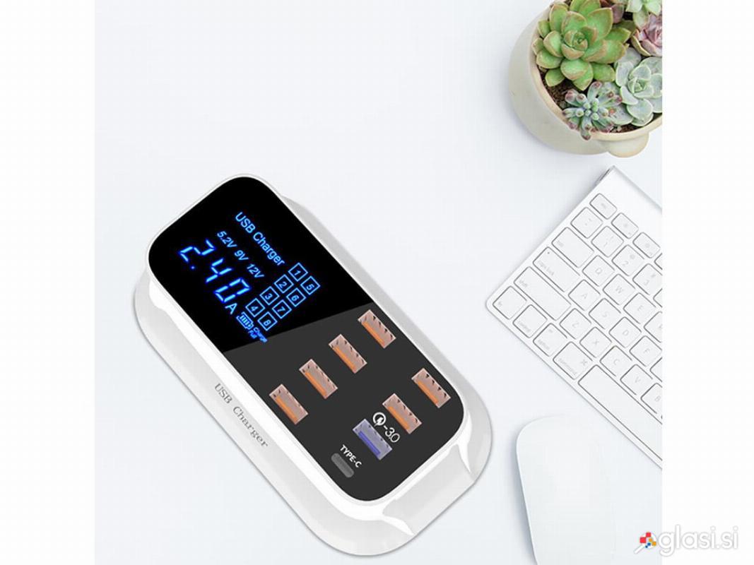 8x USB 3.0 hitri polnilec LCD 5-12V 40W