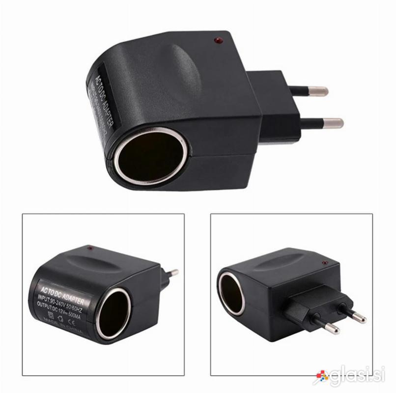 Visokokakovosten 12V adapter za avtomobilski vžigalnik za 220V / 230V omrežno napajanje. Omogoča priklop naprav, ki se napajajo iz 12 V vtičnice, v običajen omrežni priključek.