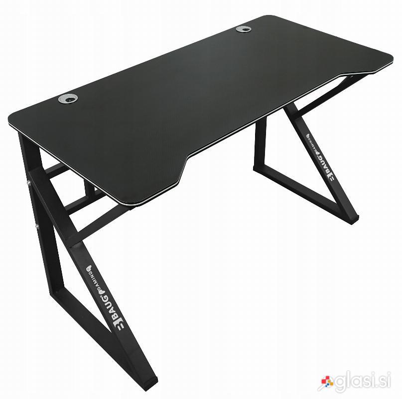 Igralna miza Baug ponuja najboljše rešitve za ljubitelje najnovejše tehnologije, navdušene igralce in ljubitelje izjemnega dizajna. Izjemno trpežna, a hkrati praktična in funkcionalna miza. Mizna plošča je prekrita s posebnim premazom z vzorcem karbona. To je izjemno praktična rešitev, mizna plošča je trpežna, odporna na praske in umazanijo, hkrati pa je videti odlično. Ima dve luknji za organizacijo kablov. Vhodi so nameščeni na obeh straneh mize, tako da bo ne glede na namestitev vaša igralna postaja vedno organizirana.
