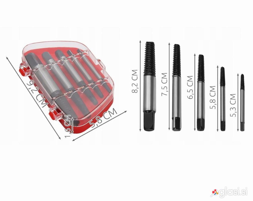 Ekstraktorji zlomljenih vijakov bodo prav gotovo nekoč prišli prav v vsakem domu, garaži ali delavnici. Skoraj vsak je imel vsaj enkrat situacijo, ko se zataknjeni vijak ni hotel odviti in je po uporabi večje sile sprostil samo glavo, ostalo pa je ostalo nedotaknjeno. Poškodovani vijaki, ki nimajo elementov, ki bi omogočali njihovo učinkovito prijemanje in odvijanje, so prava poguba vsakega mehanika - tako amaterskega DIY kot specialista. Trden set ekstraktorjev za zlomljene vijake vam bo omogočil, da se hitro in enostavno znebite poškodovanega elementa . To so spiralno rezani levosučni stožci, ki bodo kos skoraj vsakemu poškodovanemu vijaku.