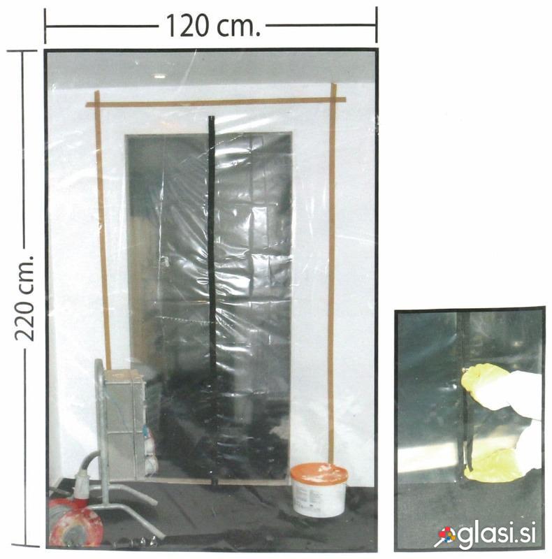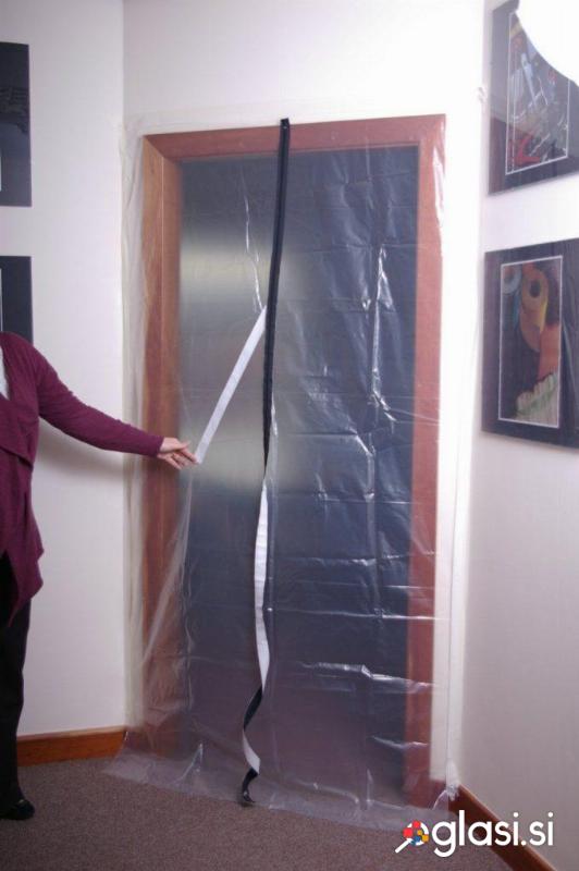 Protiprašna zaščita vratnih odprtin je izdelana iz debele brezbarvne prozorne folije.