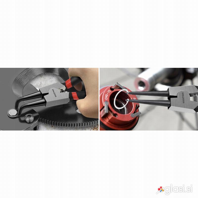 Ergonomsko oblikovan ročaj zagotavlja udoben oprijem in dober nadzor pri uporabi klešč. S tem setom klešč za odstranjevanje seger obročkov boste lahko hitro in učinkovito opravili svoje delo, ne glede na to, ali gre za popravilo avtomobila, motornega kolesa ali drugega stroja.