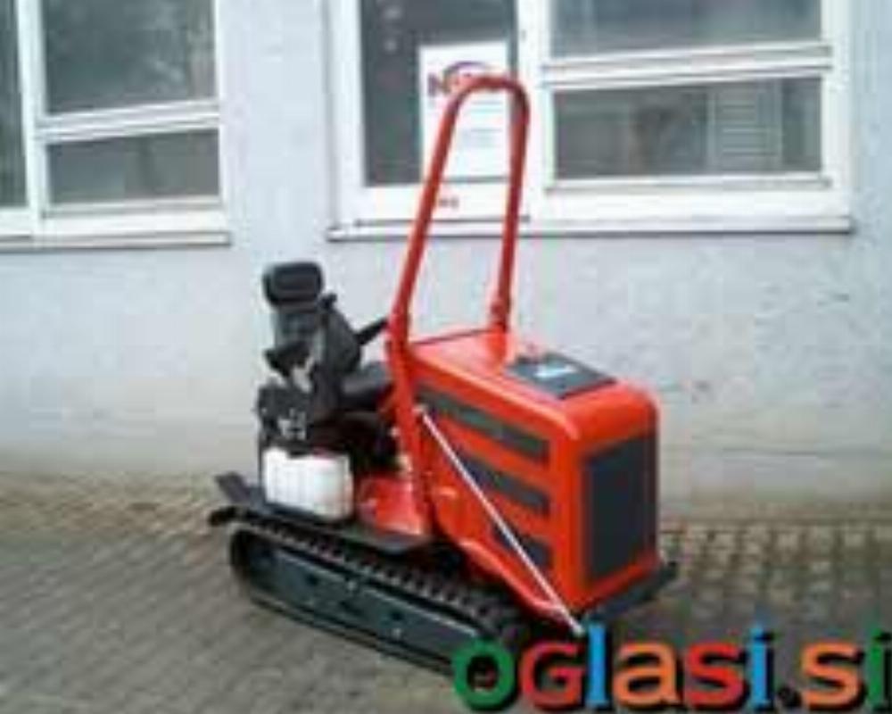 SPECIFIKACIJE vodno hlajen dizelski motor, 3 cilindri 27 kW (38 KM) hitrost 0-12 km/h naprej in vzvratno, brezstopenjsko kombiniran hladilnik za vodo in olje širina vozila: 72/80/90 cm, glede na model dolžina vozila: 180 cm teža vozila: 850 kg gumaste gosenice: 200/230x72x45 enoročno krmiljenje s tempomatom kontrolna ročica za hidravliko zračno vzmeten sedež, vrtljiv skupaj s krmilnimi ročicami posebna prednja plošča za dodatne priključke DIN-hidravlična sklopka, 3- ali 4-krat naprej in vzvratno DODATNA OPREMA prednji okvir za priključke 25 kg utež za prednje ogrodje streha za zaščito pred soncem 4-stopenjsko krmilljenje s sklopko delovni žaromet (2 kosa)