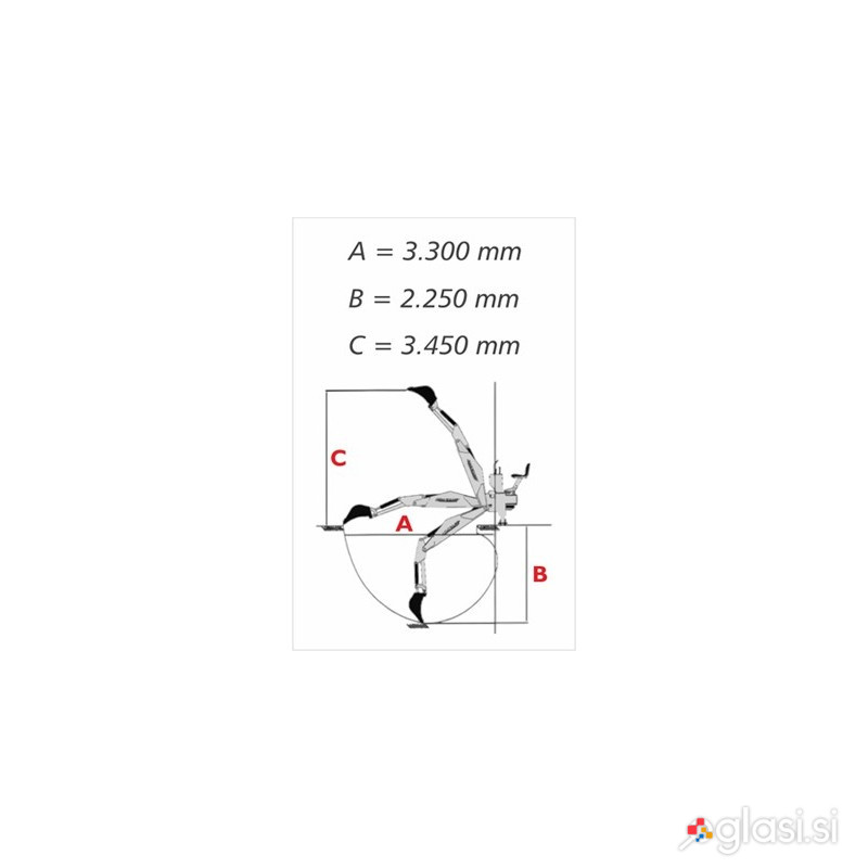 Traktorski zadnji bager Jansen BHSM-225 - Vaš zanesljiv partner za učinkovito delo! Traktorski zadnji bager Jansen BHSM-225 je vrhunska izbira za vse, ki iščejo zmogljivo in zanesljivo orodje za gradbene in kmetijske projekte. S tritočkovnim vpetjem in kardanskim pogonom, ta bager zagotavlja izjemno fleksibilnost in moč, kar vam omogoča, da opravite delo hitro in učinkovito. Moč in zmogljivost, ki ju potrebujete Traktorski zadnji bager Jansen BHSM-225 je zasnovan za traktorje z močjo med 45 in 60 HP, kar zagotavlja optimalno delovanje. S svojo težo 840 kg in silo žlice, ki meri 1.700 kg, je ta bager izjemno robusten in primeren za različne vrste dela. Njegova dolžina 3300 mm in globina kopanja 2250 mm omogočata učinkovito delo na različnih terenih. Dodatna prednost je hidravlično nastavljiva opora, ki povečuje stabilnost med delovanjem, kar je ključno pri težjih nalogah. Z bočnim gibanjem več kot 900 mm in možnostjo dela neposredno ob stenah hiš, je Jansen BHSM-225 izjemno prilagodljiv. Ne glede na to, ali gre za izkopavanje, nalaganje ali premikanje materialov, ta bager zagotavlja natančnost in učinkovitost. Upravlja se ga s 4-smernim krmilnim sistemom, kar omogoča enostavno in intuitivno upravljanje, tudi za manj izkušene uporabnike. Robustna zasnova za dolgotrajno uporabo Ena izmed ključnih prednosti traktorskega zadnjega bagra Jansen BHSM-225 je njegova robustna zasnova. V nasprotju z mnogimi konkurenčnimi modeli, ki so pogosto manj trpežni, je ta bager zasnovan za dolgotrajno uporabo. Teža 840 kg in kakovostni materiali zagotavljajo, da se bager ne bo hitro obrabil, kar pomeni manj stroškov vzdrževanja in daljšo življenjsko dobo. Zaradi svoje zasnove je Jansen BHSM-225 idealen za različne vrste dela, od gradbenih projektov do kmetijskih opravil. Njegova višina nakladanja do 2300 mm in polmer vrtenja 180 stopinj omogočata enostavno nalaganje in premikanje materialov, kar povečuje produktivnost. Vse to skupaj pomeni, da boste z Jansen BHSM-225 lahko opravili več dela v krajšem času, kar je ključno za uspeh vaših projektov. Enostavna uporaba in podpora strokovnjakov Traktorski zadnji bager Jansen BHSM-225 je zasnovan z mislijo na uporabnika. Njegova enostavna namestitev in upravljanje omogočata hitro prilagoditev in takojšnjo uporabo. V naši trgovini SBAY iz Grosuplja vam naši izkušeni strokovnjaki z veseljem svetujejo pri izbiri in uporabi tega vrhunskega orodja. Z garancijo 24 mesecev lahko brez skrbi uživate v vseh prednostih, ki jih ponuja Jansen BHSM-225. Ne glede na to, ali ste profesionalni izvajalec ali navdušenec nad DIY projekti, bo ta bager vaš zanesljiv partner pri vseh nalogah. Ne odlašajte, obiščite nas v SBAY in odkrijte, kako vam lahko Jansen BHSM-225 olajša delo! TEHNIČNI PODATKI: Skupna dolžina: 3300 mm Globina kopanja: 2250 mm Podporna širina: 1440 mm Višina: max. 3450 mm Višina nakladanja: max. 2300 mm Polmer vrtenja: 180 stopinj Bočno gibanje: 960 mm Kot odprtja žlice: 203 stopinj Sila žlice: 1700 kg Rpm: 540 Hidravlični tlak: 160 bar Pretok: 40 L / min. Teža vključno s pakiranjem: 875kg Teža: pribl. 840 kg Dimenzije pakiranja: 1600x1200x2300 mm GARANCIJA: 24 MESECEV
