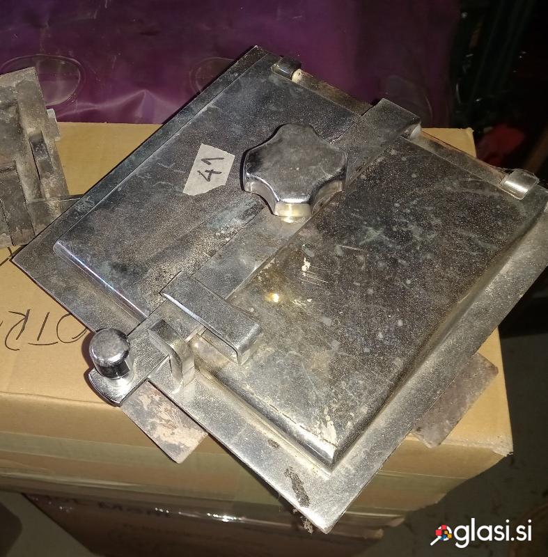 Vratca 2 x železna in rešetko za kamin oz. lončeno peč, komplet. Vratca so trojna - glavna ter notranja za nalaganje drva ter manjša spodnja za zrak. Vse je rabljeno, vendar dobro ohranjeno in se lahko vgradi.