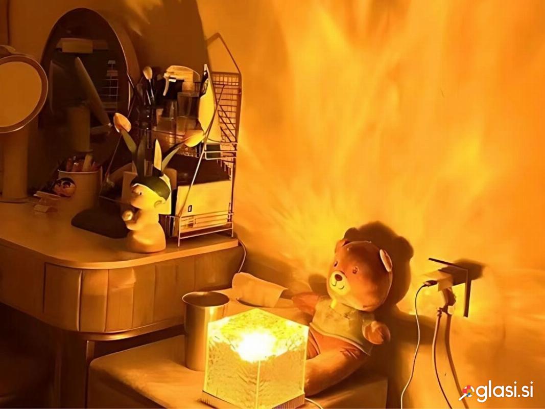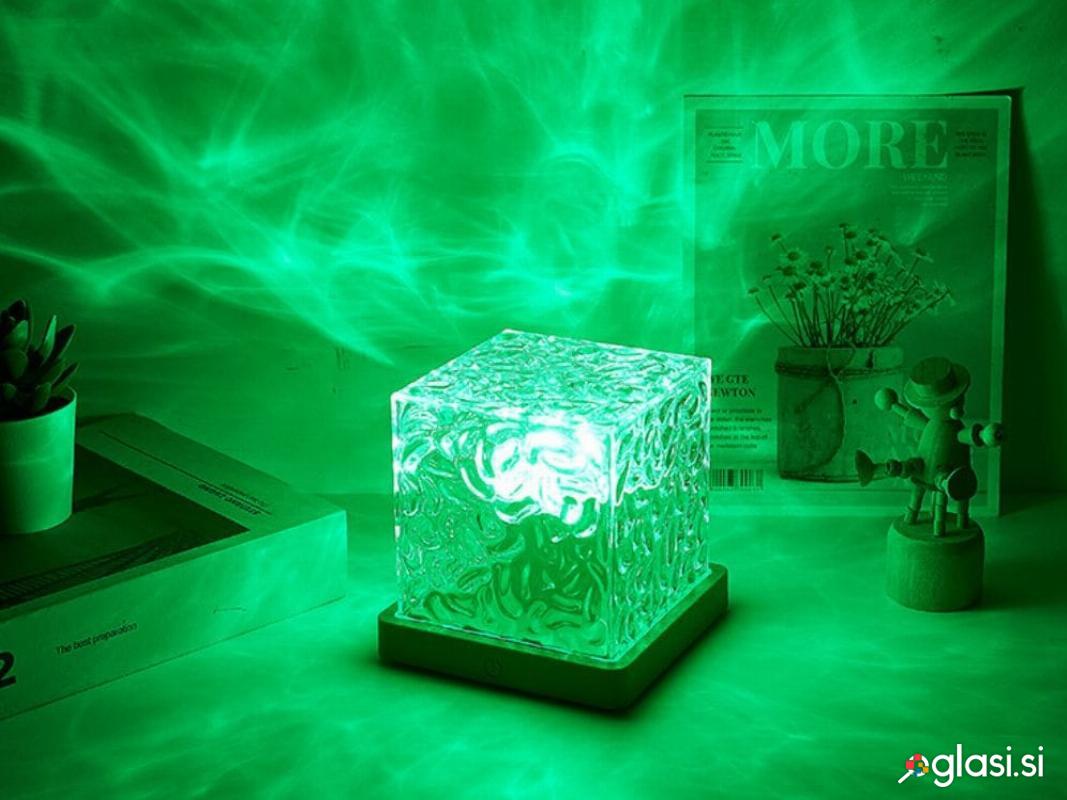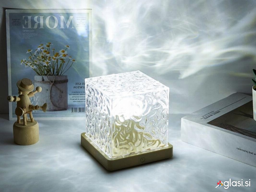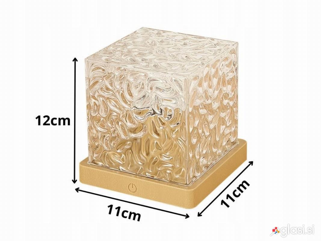 Kristalna svetilka v obliki dekorativne kocke je sodoben vir svetlobe, ki ustvarja neverjetne svetlobne učinke na stenah in stropu . Idealna je kot ambientalna svetilka v spalnici, dnevni sobi, otroški sobi ali na toaletni mizici . Njena dizajnerska steklena struktura lomi svetlobo in ustvarja edinstven učinek razpršitve barv.
