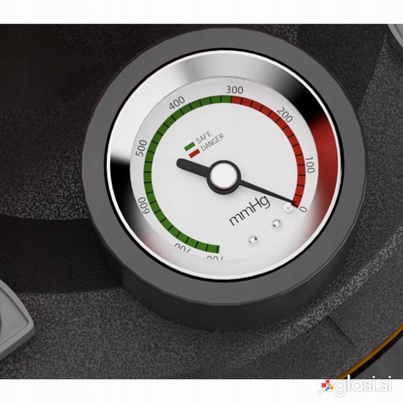 MANOMETER – prisesek je opremljen z indikatorjem sesalne moči. Prikazuje do 760 mmHg. Ko je igla v zelenem območju, je dvižna zmogljivost največja.