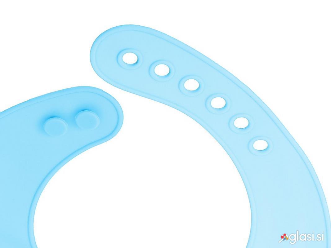 Silikonski slinček za hranjenje otrok moder