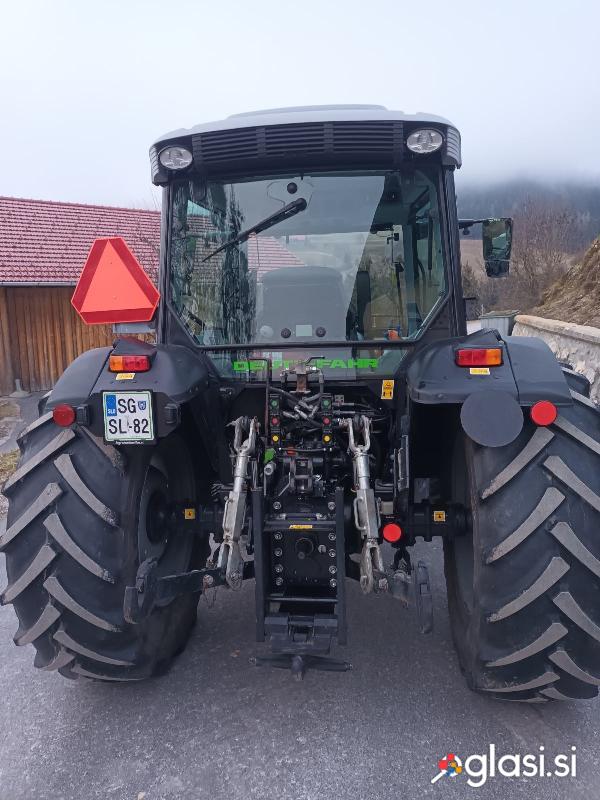 DEUTZ Fahr 5095 D – GS B. Togi, štirikolesni pogon, s kabino, letnik 2022, in 1022 delovnih ur. MOTOR Motor FARMotion 45 STAGE V. Sistem skupnega voda. 4 cilindri, 3849 ccm, turbo hladilnik. EGR (zunanje recirkulacijo plina), DOC (dizel oksidacijski katalizator), DPF (filter trdih delcev dizelskega goriva), SCR. Nazivna hitrost: 2200 vrt./min. Homologirana zmogljivost (ECE R 120): 90 KM/66,4 kW. Največja moč (ECE R 120): 95 KM/70 kW, rezervar goriva 110l + 13 ADBlue POGON Menjalnik 45V + 45R (5 prestav - 3 skupini – 3 elektro prestave pod obremenitvijo), elektro inverter in Stop&Go, maksimalna hitrost 40 km/h Eco, zavore na vseh štirih kolesi, v oljni kopeli, kardanska gred 540/540E/1000 obr/min. KABINA Komfortna kabina z ventilacijo in ogrevanjem + ročna klima, nastavljivo vetrobransko steklo, pritrditve kabine na Silent Block za zmanjšanje vibracij, sedež zračno vzmeten Grammer MSG93/721 z avtom. varnostnim pasom, DAB + radio, elektrohidravlično aktiviranje za: sklopko priključne gredi, zaporo sprednjega in zadnjega diferenciala, vklop štirikolesnega pogona, zadnji brisalec, delovne luči na kabini 2x spredaj in 2x zadaj HIDRAVLIČNI SISTEM Hidrostatično krmiljenje z ločeno črpalko. Delovna hidravlika s pretokom 54 l/min. Dvižna roka: priklop krogle tip cat. 2, dva dodatna dvižna cilindra - dvižna sila: 3600Kg, EHR upravljanje zadnje hidravlike , zadnji povratni vod brez tlaka, dodatni hid.ventili 3x dvosmerni s plavajočim položajem, s 6 spojkami, prednja hidravlika s predpripravo za prednjo kardansko gred. PRIKLOP Priklop za prikolico KAT "C" EG s hitro nastavitvijo + avtomatska vlečna kljuka KOLESA Standardna kolesa: 405/70R20spredaj, 480/70R30 zadaj, prednji blatniki.