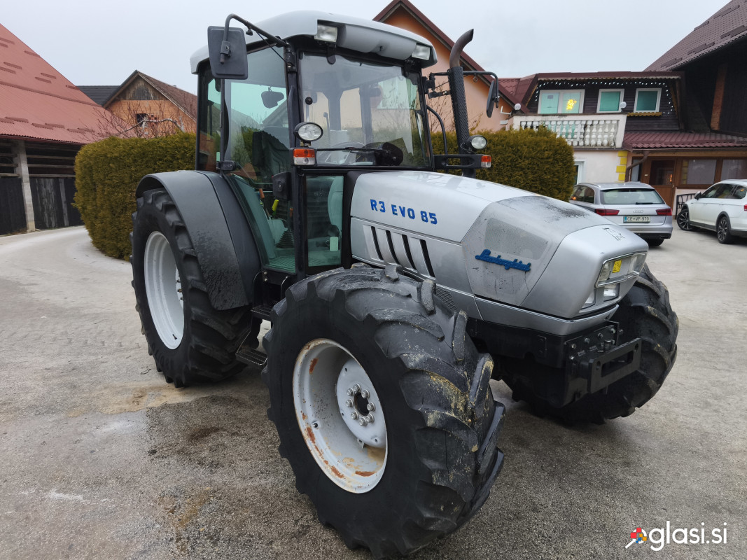Lamborghini R3 evo 85, odlično delovno stanje, ugodno, nizek model, vse original tovarniško stanje ni barvan letnik 2009 85 konjev 4800 ur (original) motor 4 cilindre 3 pare hid. izhodov 4x4 pogon in zavore zavore za priključke 40 km/h gume 480 70 r34 in 420 70 r24 60% mehanski invertor smeri mehanski vklop pogona. elektro vklop,kardana in špere mehanska hidravlika.