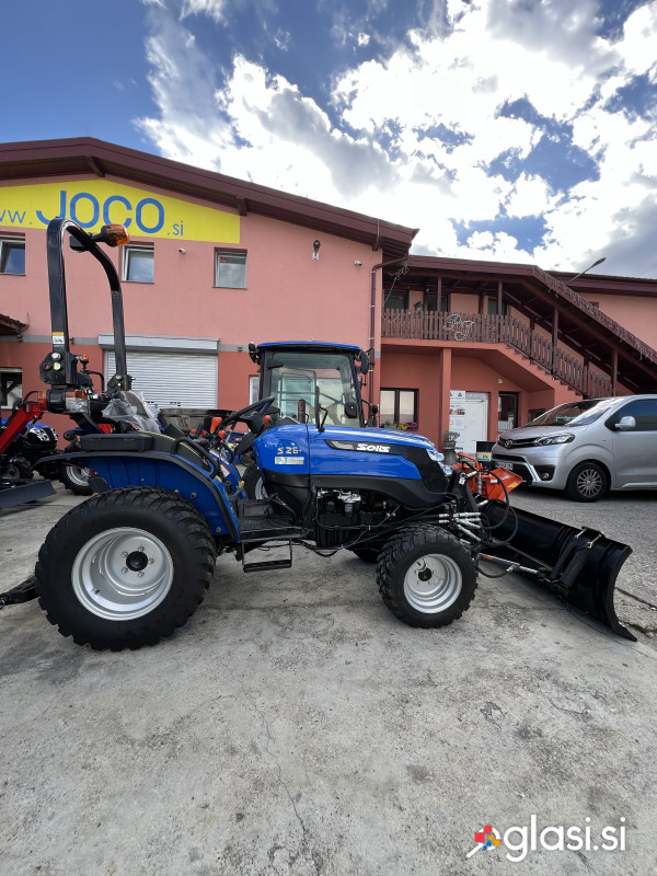 NA ZALOGI SOLIS 26 6+2: 10.300€ Z DDV PLUŽNA DESKA: 1.500€ Z DDV 5 LET GARANCIJE ------------------------------------------------------------------------------------------------------------- VELIKA AKCIJA DO KONCA LETA 2025: OB NAKUPU TRAKTORJA - PRIKOLICA SOLIS TS-1000 ------> SAMO 250 EUR (redna cena: 1.500 eur) -----> VAŠ PRIHRANEK: 1.250 EUR ------------------------------------------------------------------------------------------------------------------- GLAVNE TEHNIČNE LASTNOSTI: Homologiran v skladu z EU standardi Mitsubishi motor in konstrukcija Visokotlačna črpalka in šobe DENSO Japonska Pogon na vsa 4 kolesa - možen izklop Zapora diferenciala Hidravlični volan Hidravlični sistem MITA Varnostni lok z rotacijsko lučjo 2 hidravlična izhoda zadaj Priklop za prikolico zadaj Priklop za vleko spredaj Zadnja hidravlika Kat.1, moč 600kg Sprednje uteži 2x15kg Set rezervnih delov Set orodja Mitsubishi MVS3L2, vodno hlajen Prostornina motorja: 1318 cm3 Število valjev: 3 Nominalni obrati: 2700 obr/min Moč kW/KM: 18/25 Št. prestav: 6 naprej / 2 nazaj Najvišja hitrost: 17.05 km/h Najnižja hitrost: 1.53 km/h Obrati gredi: 540/1000 obr./min. Vklop: mehanski Spredaj: 6,5-12 kmetijske Zadaj: 280/70R18 kmetijske Na voljo tudi: širše kmetijske, industrijske, travniške pnevmatike z doplačilom Rezervoar za gorivo: 29 litrov Teža: 1055 kg Dolžina/širina/višina v mm: 2705/1150/2153 z var. lokom Medosna razdalja: 1560 mm Količina olja v motorju: 4.2 litra Delovna luč za osvetlitev zadnjega dela MOŽNO DOPLAČILO ZA ŠIRŠE KMETIJSKE PNEVMATIKE ALI INDUSTRIJSKE PNEVMATIKE. --------------------------------------------------------------------- MOŽNO FINANCIRANJE: - LEANPAY DO 7 LET BREZ DODATNE DOKUMENTACIJE IN BREZ POLOGA - HITRI KREDIT (SKB, NLB) - POTREBUJEMO LE ZADNJO PLAČILNO LISTO IN ZADNJI BANČNI IZPISEK OZ. ZADNJI ODREZEK POKOJNINE --------------------------------------------- MOŽNOST NAPAK PRI VNOSU, ZA NJIH NE ODGOVARJAMO --------------------------------------------------------------------------------------------------- ZA VEČ INFORMACIJ SE OBRNITE NA PRODAJALCA: PJ AGRO D.O.O. TRŽAŠKA C. 23G 2000 MARIBOR M: 041 735 521.