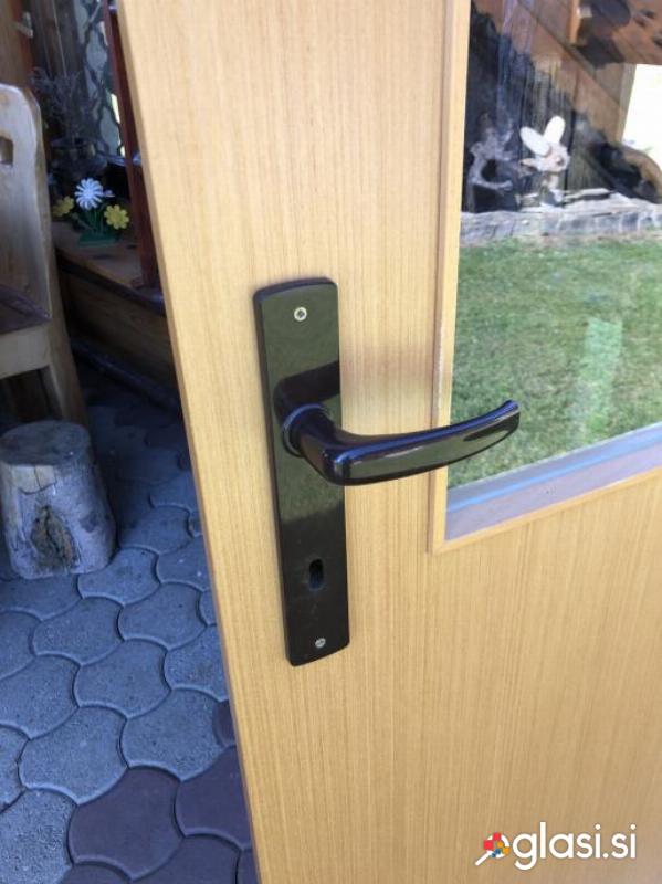 Vrata desna notranja, spodaj rezana . Les bukev, širina 85cm x193cm. .Zraven pripada kljuka in steklo.