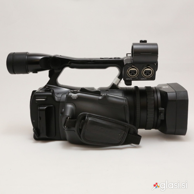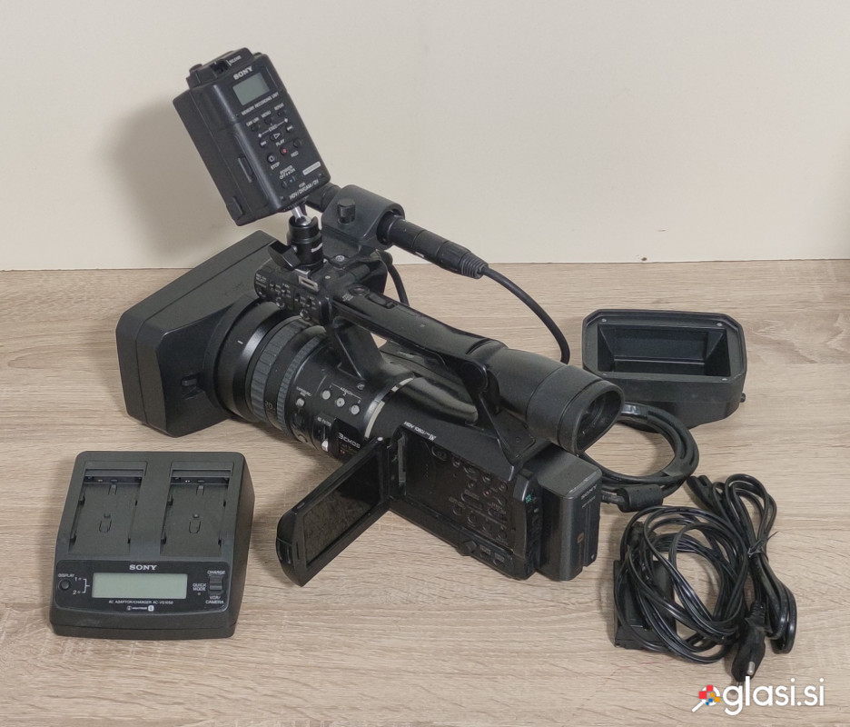 Profesionalno kamero Sony HVR-V1E, digitalni snemalnik Sony HVR-MRC1, XLR Mikrofon Hitachi MC-Z2 in ostalo opremo. Kamera ima 3 ClearVid CMOS senzorje v kombinaciji s sony slikovnim procesorjem EIP, ki zajemajo sliko v polni Full HD ločljivosti, 20x optični zoom z Carl Zeiss Vario-Sonnar T lečo, 2 vhoda XLR za zunanje mikrofone, 3.5" LCD vrtljiv zaslon in ogromno različnih priklopov HDMI, i-Link Firewire, USB, A/V izhod, komponentni izhod, reža za spominsko kartico Memory Stick PRO DUO,... Kamera v osnovi snema na miniDV kasete, ki se je nadgradila z digitalnim snemalnikom Sony HVR-MRC1 in sedaj snema na spominske kartice CF (Compact Flash). V kompletu se nahaja: Profesionalna kamera Sony HVR-V1E Digitalni snemalnik Sony HVR-MRC1 i-Link FireWire vmesnik Sony HVRA-CR1 za digitalni snemalnik Sony HVR-MRC1 XLR Mikrofon Hitachi MC-Z2 Polnilec Sony AC-VQ1050 Vmesnik DK-415 za stalno napajanje kamere preko polnilca Baterija Sony NP-F970 7.2V 6600mAh za kamero Baterija Patonia NP-F550 7.2V 2200mAh za digitalni snemalnik Spominska kartica CF (Compact Flash) Sandisk Ultra 4GB SmallRig Cold Shoe 1/4" nosilec za Digitalni snemalnik Sony HVR-MRC1 Dodatna manjša sončna zaslonka za lečo Kabel i-Link FireWire za povezavo kamere in digitalnega snemalnika