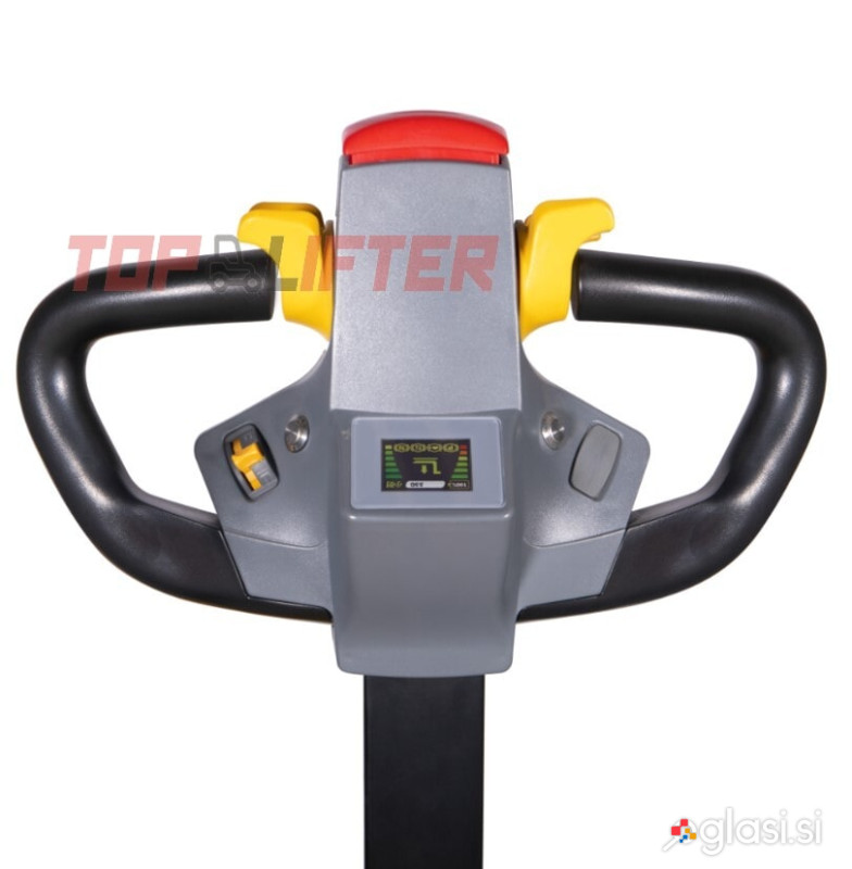 Na zalogi Dostava Proporcionalni dvig – natančna manipulacija tovora Dvižna nosilnost: 1500 kg Dvižna višina: 2500 mm Dolžina vilic: 1150 mm Najmanjša višina vilic: 90 mm Širina vilic: 160 mm Skupna širina vilic: 560 mm Skupna širina: 820 mm Skupna dolžina: 1730 mm Višina odprtega teleskopa: 2935 mm Višina zaprtega teleskopa: 1730 mm Spuščanje: električno Dvigovanje: električno Polmer obračanja: 1490 mm Kolesa: 210×70/80×70/115×55 mm Kolesa: Poliuretan – tandem Vrsta zavore: elektromagnetno Baterija: 24V/71Ah Pogonski motor: 0,75kW Dvižni motor: 2,2kW Polnilec: 220V Teža: 570 kg Servis in rezervni deli zagotovljeni Garancija 12 mesecev CE-certifikat Cena je brez DDV Pridružujemo si pravico do spremembe cene. Cena skladišče Maribor. Slike so simbolične. Možnost napak pri vnosu podatkov. Točnost podatkov preverite pri prodajalcu, za pisne napake ne odgovarjamo. Informacije in naročila: Tel. št. 051/412 540 Elektronski naslov: info@toplifter.si Spletna stran: www.toplifter.si https://www.youtube.com/watch?v=Ckhh2WciFFU&t=6s.