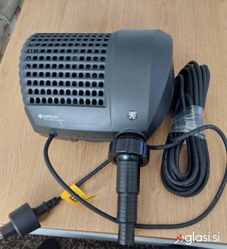 Vodno črpalko Gardena FSP 5500 Economic, namenjeno za filtre in potoke. Napajanje je 230V / 50Hz, poraba 60W, maksimalni pretok 4300 l/h in maksimalna višina črpanja 2,8 m. Zaščita IP 68 zagotavlja zanesljivo delovanje v mokrem okolju. Art. 7863