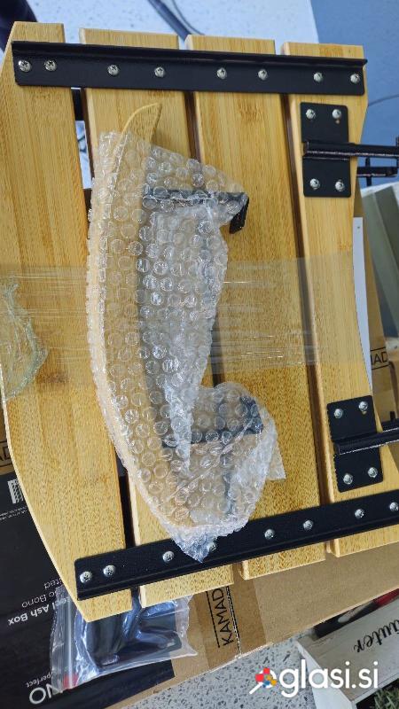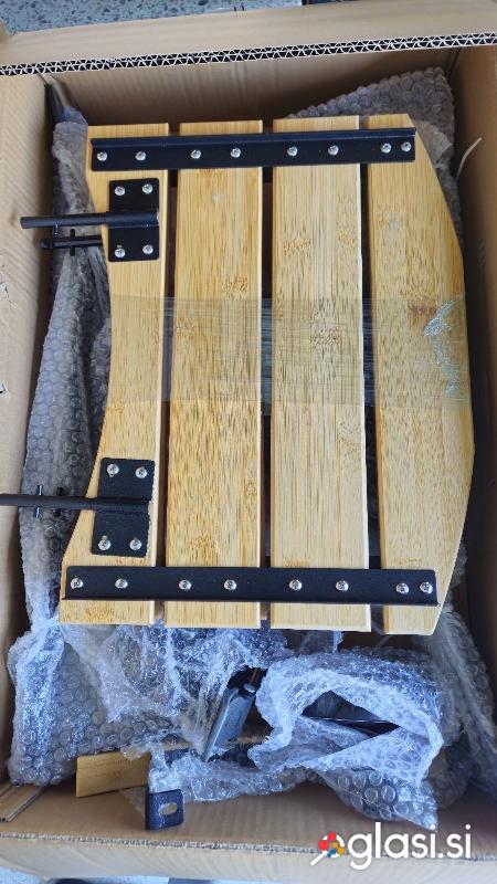 Stojalo za žar kamado bono ter stranski odlagalni polici in ročaj, original, novo, nerabljeno, zapakirano in 2 polički akacijev les z ročajem.