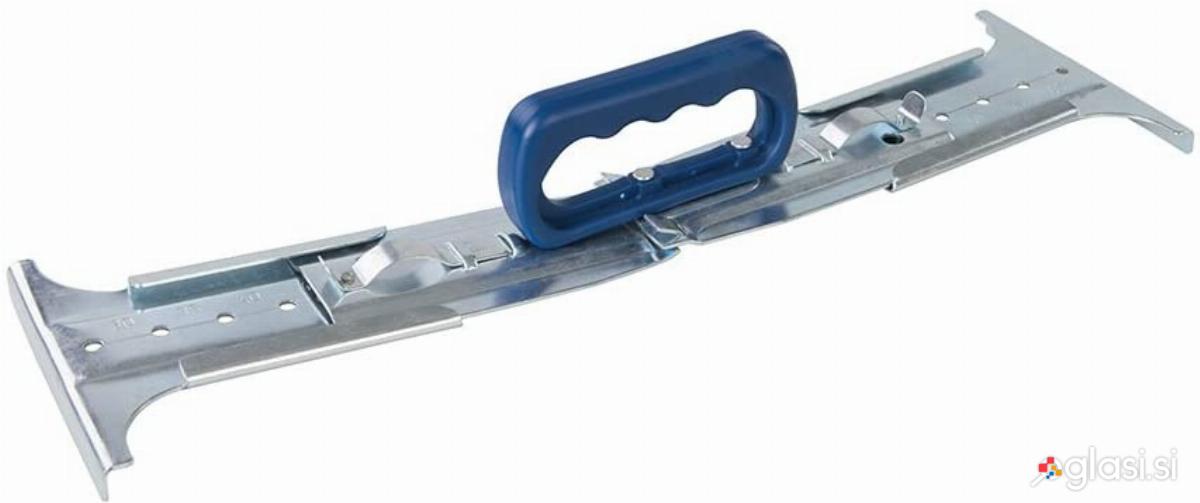 Držalo za ploščice in terakoto 30–50 cm (koda UCH) je orodje za polaganje, ki omogoča prijemanje, prenašanje in natančno poravnavo ploščic med polaganjem. Nastavljiv razpon vpenjanja od 30 do 50 cm omogoča delo s priljubljenimi velikostmi brez potrebe po več ločenih prijemalih. Samozaklepni mehanizem zagotavlja stabilen oprijem in nadzor nad ploščico, kar zmanjšuje tveganje premikanja in razpok. Ergonomski plastični ročaj izboljša udobje pri delu, največja nosilnost 20 kg pa omogoča varno rokovanje s težjimi predmeti znotraj določenega razpona. Razmiki med nastavitvami 5 cm omogočajo enostavno in hitro nastavitev orodja na določeno velikost brez dolgočasnih nastavitev.