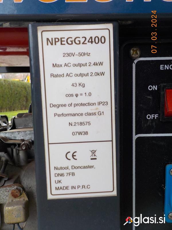 Agregat Einhell 2,4 kW, nov, v manjši okvari ugodno prodam, Uporabljen cca 10 delovnih ur, Motorni del brezhiben, vizualno brez praske.