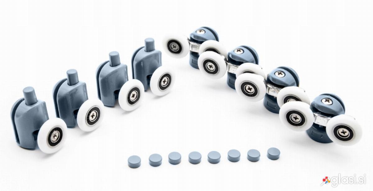 UNIVERZALNI - valji so izdelani iz plastike, najlona in jekla, odpornega proti koroziji. Ustrezajo vsem tuš kabinam, ki uporabljajo ta tip krogličnih ležajev. Koleščki in kolesca se prilagajajo obliki vodila.