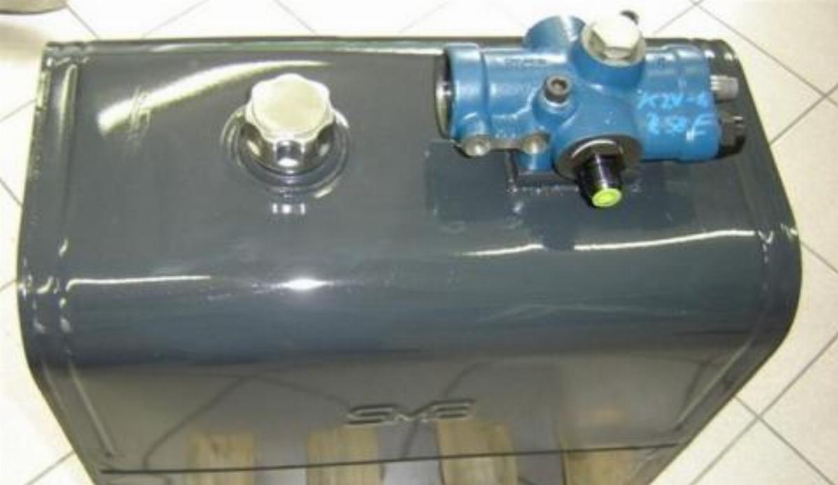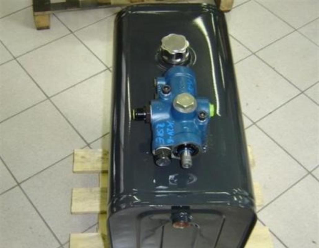 Rezervoar za hidravlično olje, komplet z distribucijskim ventilom, zračno voden, pretoka 200-250 l olja/min. Dimenzije d: 600 mm, v: 570 mm + ventil 700 mm, š: 320 mm. Brez ddv